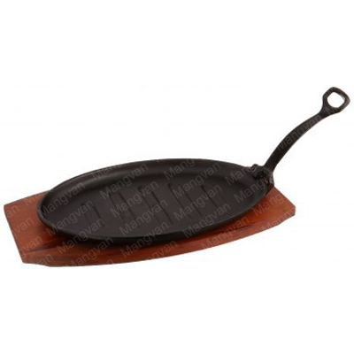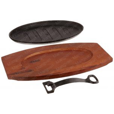 Cast Iron Steak Platter with Wood Underliner and Gripper to serve steak, vegetables, fajitas and more. This platter offers superior heat distribution for thorough cooking while its heavy weight construction gives it excellent durability. For added convenience it has a gripper handle that offers a well-balanced grip for cooking and serving.