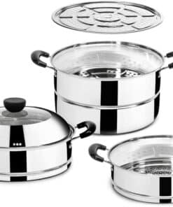 - 3 Tier Stainless Steel Steamer Set
