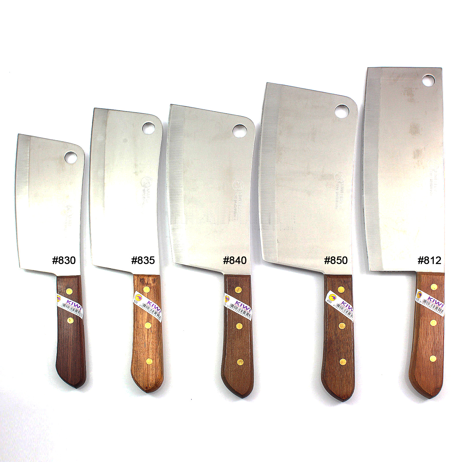 Kiwi knife Cleaver, The cleaver is mostly used to slice boneless meats, chop, slice. It is an excellent tool for smashing garlic and ginger and also use to transfer food from cutting board to wok. Or use for chop meat such as chicken, beef for making Larb. It is a general-purpose kitchen knife. This Thai cleaver looks much like the butcher cleavers familiar in butcher shops in the west, but thinner. Made from high-quality stainless steel. . Product of Thailand.