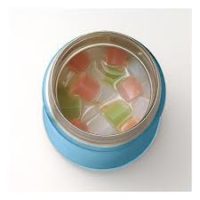 - Vacuum-insulated stainless steel food jar keeps foods hot or cold for hours